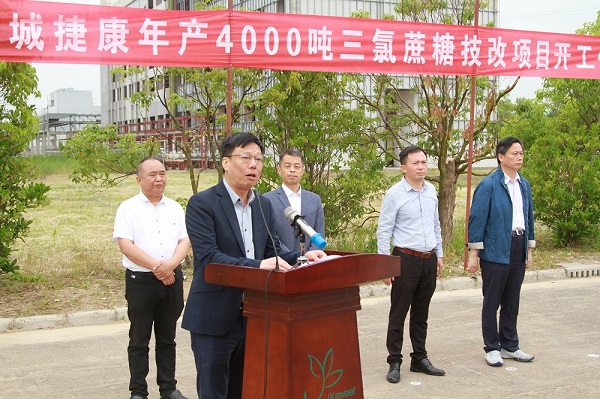 在現(xiàn)場(chǎng)嘉賓的美好祝愿與殷切期盼下,吳裕慶副總裁正式宣布:鹽城捷康年產(chǎn)4000噸三氯蔗糖技改項(xiàng)目正式開(kāi)工!